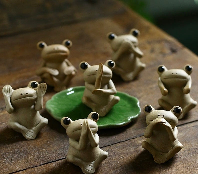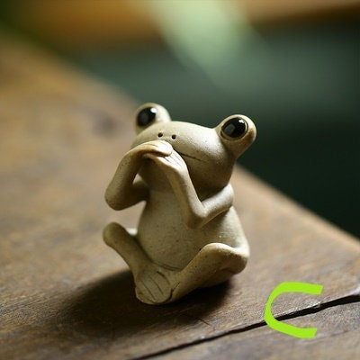 Crafted with meticulous attention to detail, this delightful ceramic frog figurine stands at 5cm high, 4cm wide.