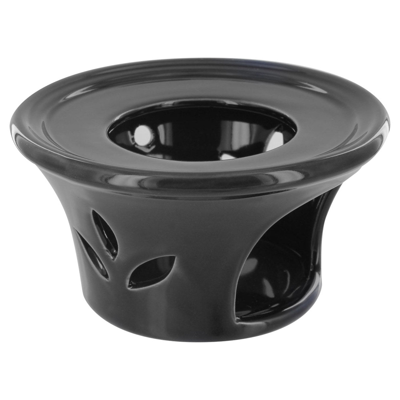 Keep your tea warm and your table stylish with this sleek black ceramic teapot warmer. Designed to hold a standard tea light (not included), this warmer features an open window to allow heat to rise and gently warm your teapot. Its grooved top is perfectly sized to fit teapots with a 4-inch base for a snug and secure fit, including our matching 33oz black stoneware teapot. While it accommodates most teapot sizes, this combination offers the perfect match in both function and aesthetic.