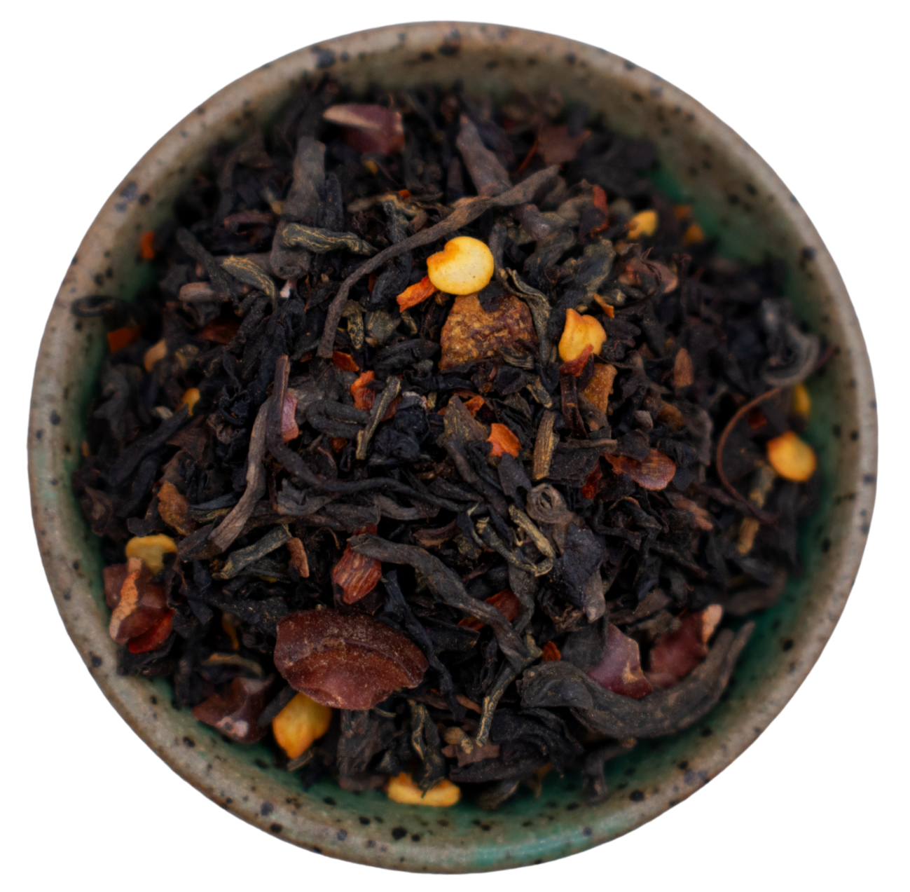 - Orange Peel: The bright, citrusy orange peel adds a refreshing lift to the blend, cutting through the richness and spiciness with its zesty, slightly tangy flavor. It provides a burst of freshness that contrasts beautifully with the earthier notes of the Pu Erh and black teas.